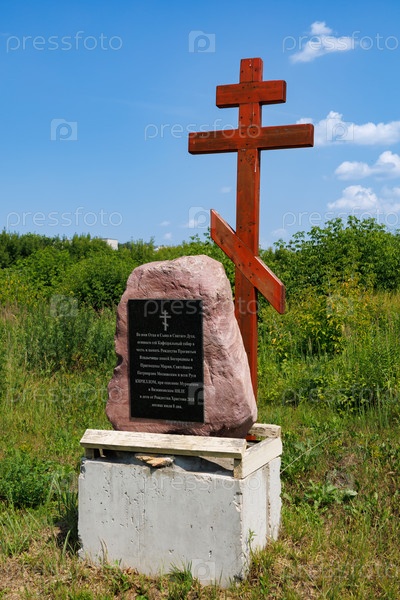 Памятный камень и крест об основании Храма Петра и Февронии в городе Муром (Россия)