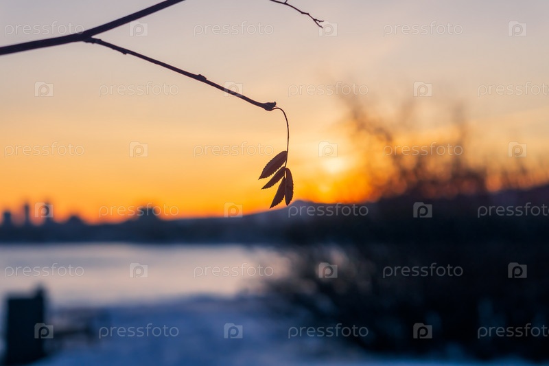 Зимний яркий рассвет над Енисеем в центре Красноярска