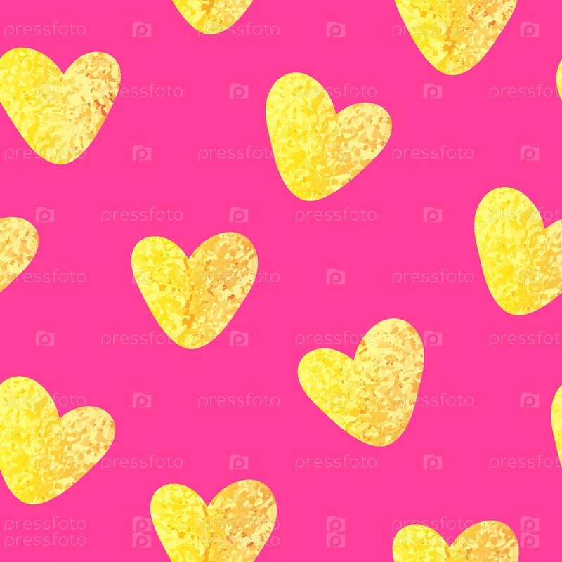 Блестящее золотое сердце бесшовный узор на розовом фоне
