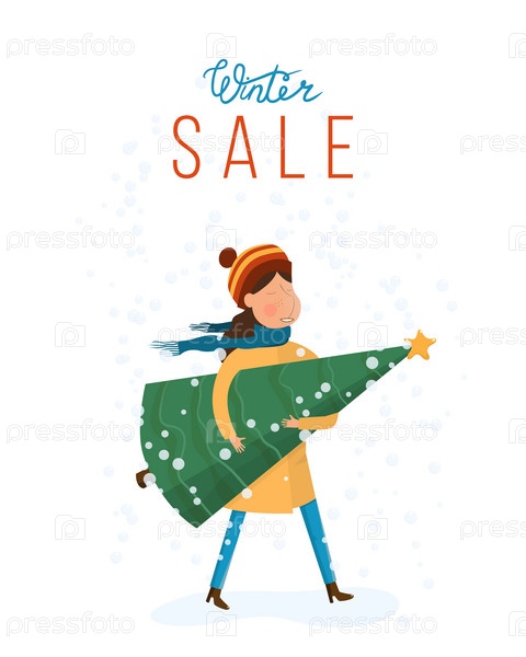 Баннер с девушкой, спешащей на большую рождественскую распродажу