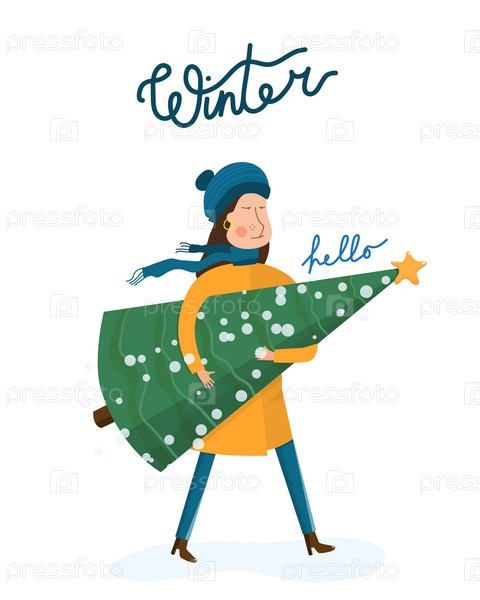 Баннер с девушкой, спешащей на большую рождественскую распродажу