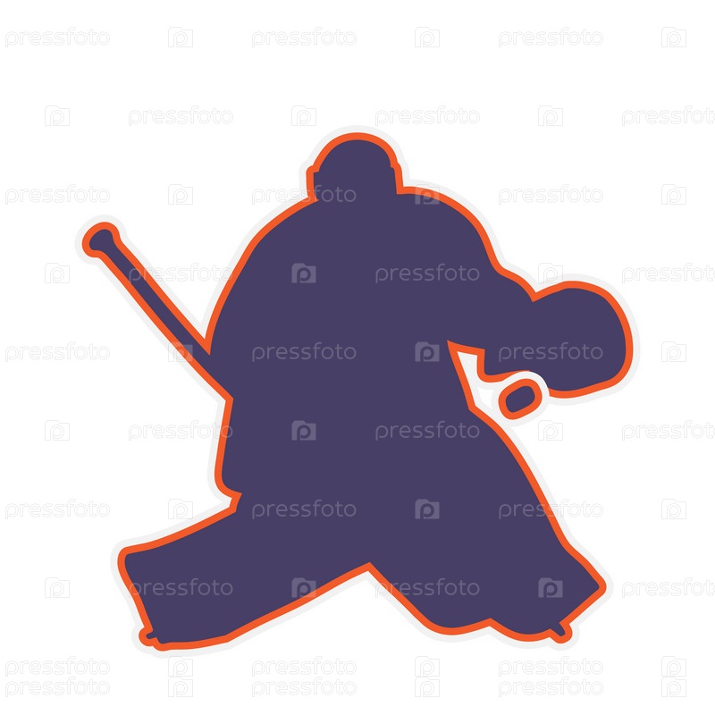 Хоккейный вратарь в действии - силуэт векторной иллюстрации