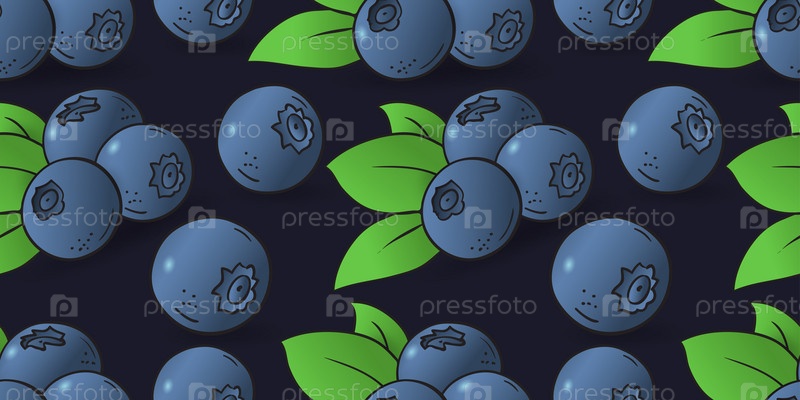 Бесшовный узор из черники с листьями