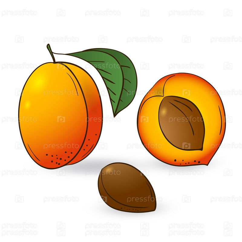 Вектор рисованной целый абрикос, половина с косточкой абрикоса
