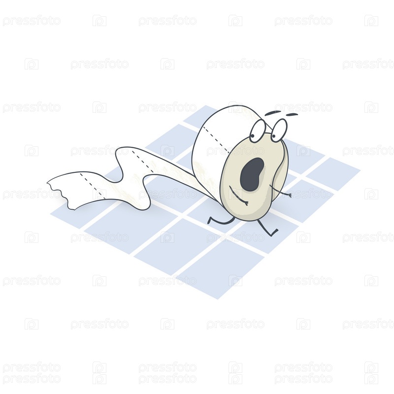 Рулон туалетной бумаги бегает по плитке в туалете
