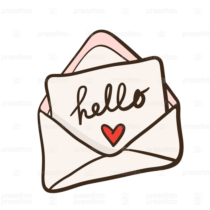 Романтическое письмо с иллюстрацией в стиле комиксов в конверте с сердечком