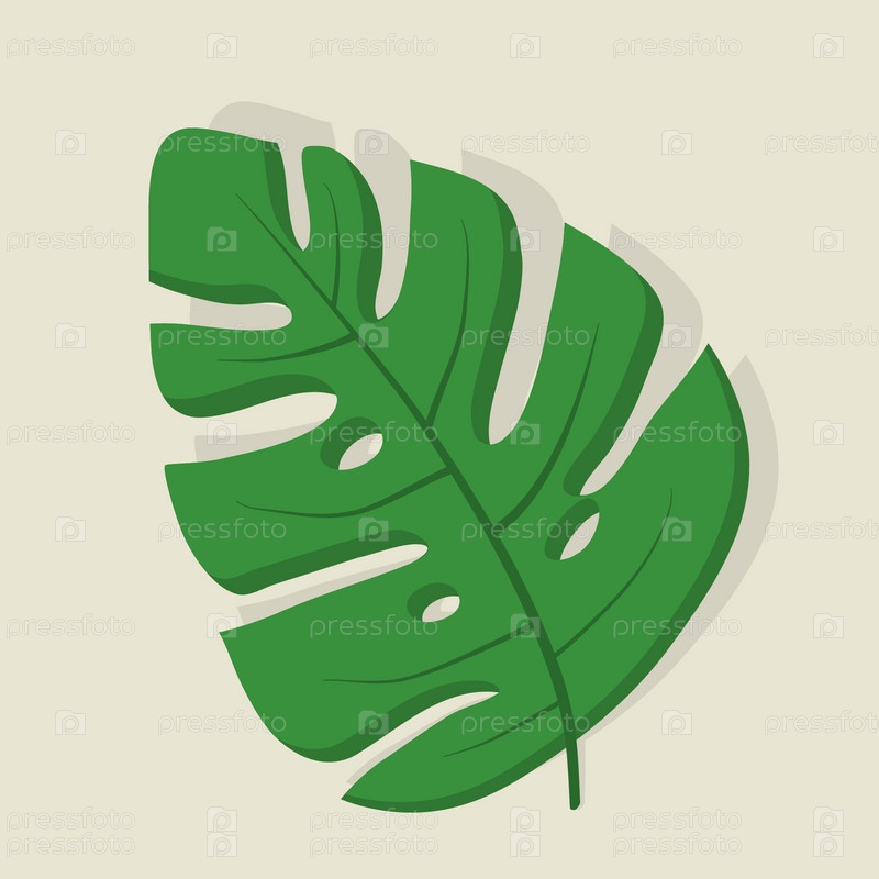 Зеленый лист монстеры с тенью на желтом фоне