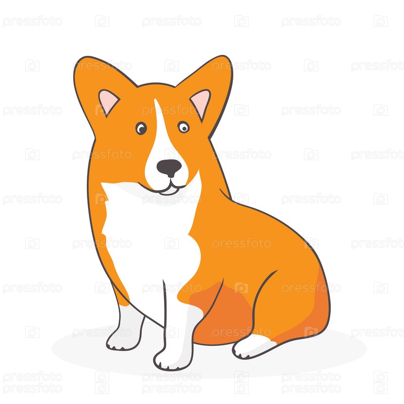 Милый мультяшный красный пес Корги сидит на ковре