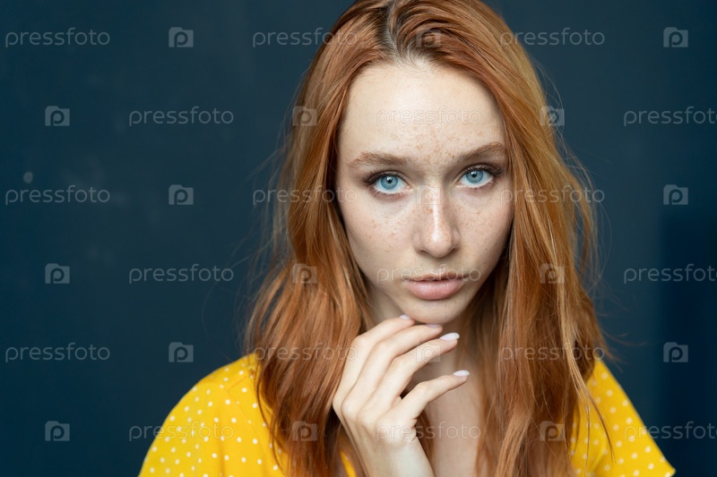 Портрет женщины с рыжими волосами в студии