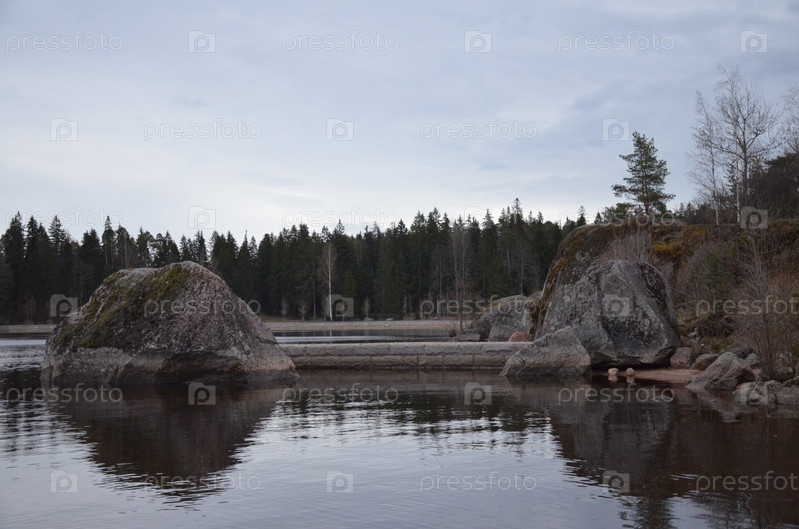 Вид на бухту Защитная в парке Монрепо в Выборге