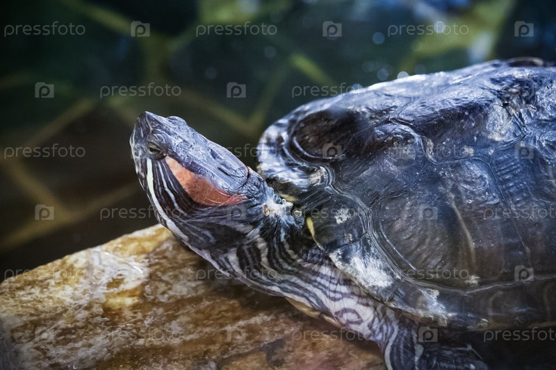 Красноухая черепаха, Trachemys scripta, портрет в зоопарке