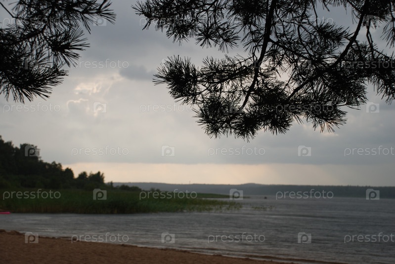 Серо-белые облака над широкой рекой