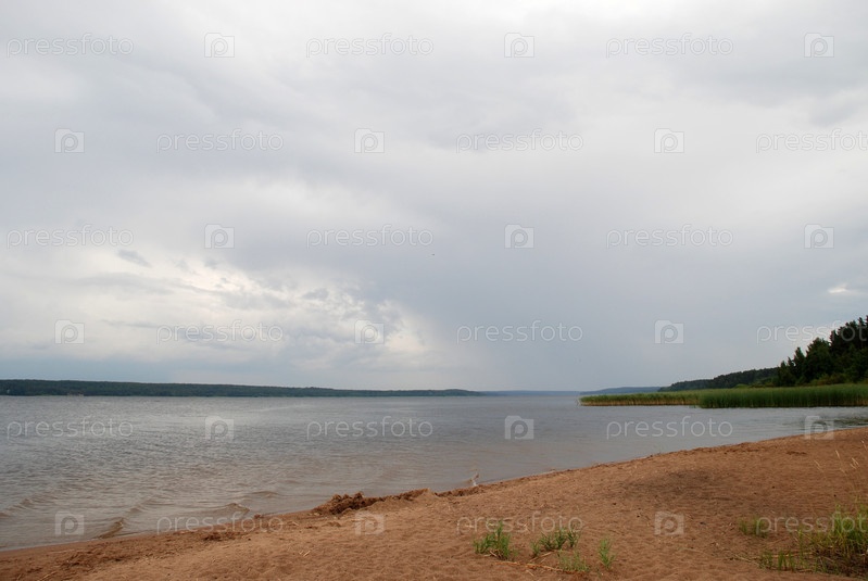 Коричневый пляжный песок на берегу реки