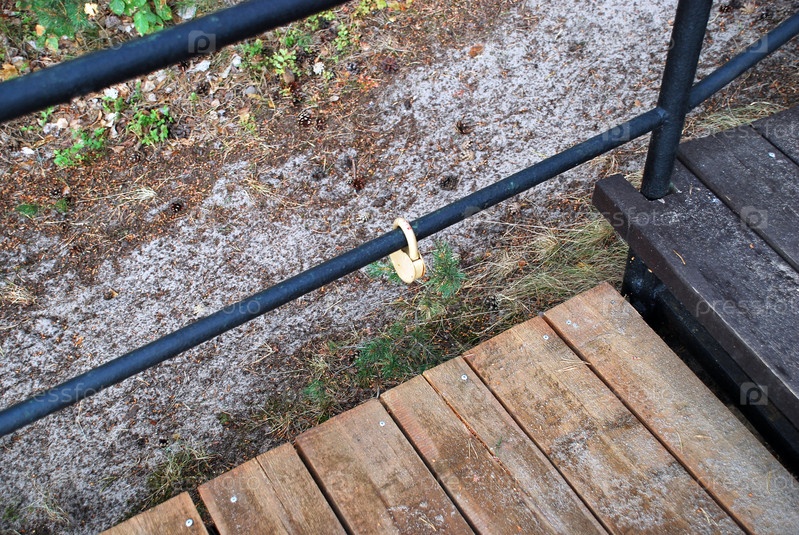 Желтый замок на железных перилах