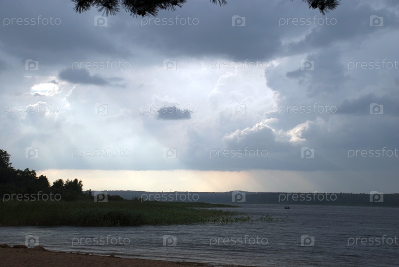 Серые грозные тучи над рекой