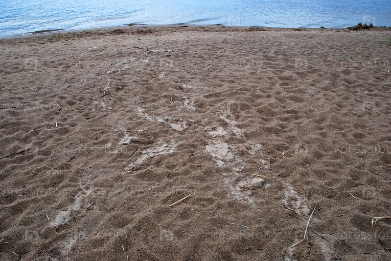 Влажный пляжный песок со следами ног