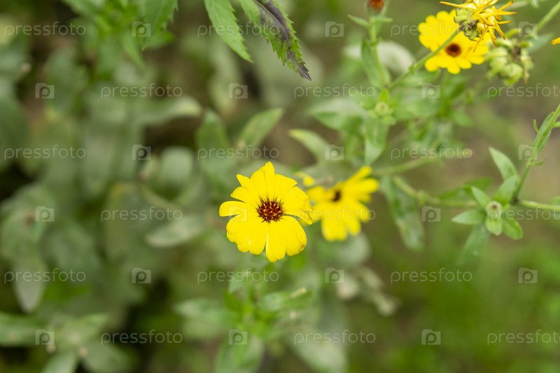 Яркие цветы в осеннем саду на даче в сибири