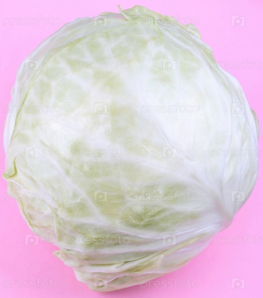Глава белокочанной капусты на розовом фоне