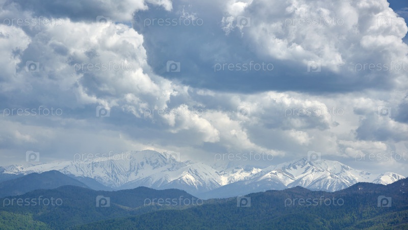 Грозовое небо над заснеженными скалистыми горами. Грозовые облака над заснеженными горами
