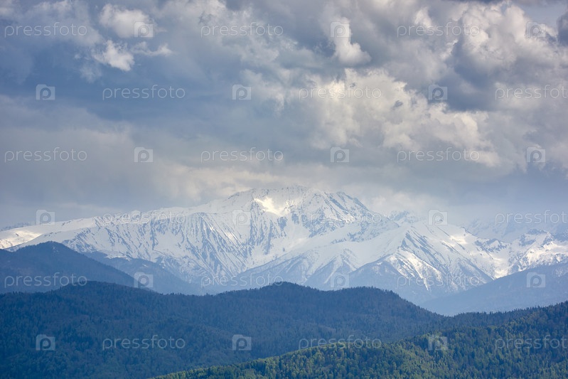 Грозовое небо над заснеженными скалистыми горами. Грозовые облака над заснеженными горами