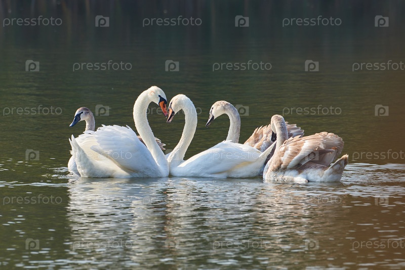 Семья лебедей-шипунов на озере. Цвет Лебедя