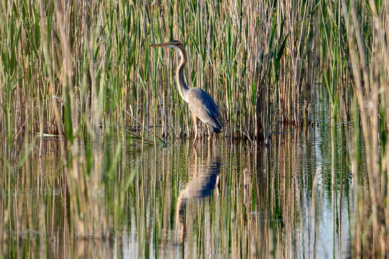 Фиолетовая цапля. Ардея пурпурная. Фиолетовая цапля на фоне камыша