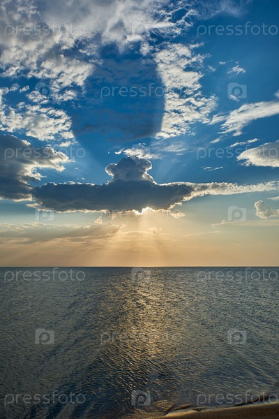 Облако, похожее на летящую по морю подводную лодку, благодаря которой пробиваются солнечные лучи