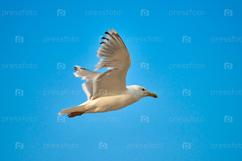 Чайка летит в голубом небе. Чайка в облаках голубого неба. Чайка летит в небе