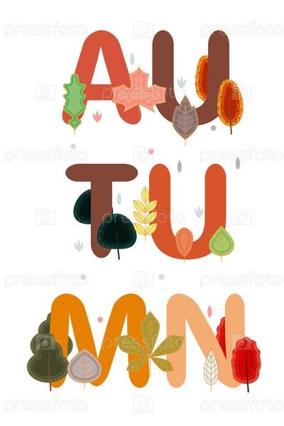 Осеннее тематическое текстовое искусство, украшенное красными и оранжевыми деревьями и падающими листьями