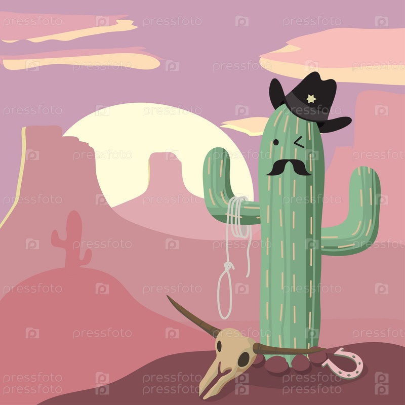 Кактус в мультяшном стиле - зеленый кактус в шляпе