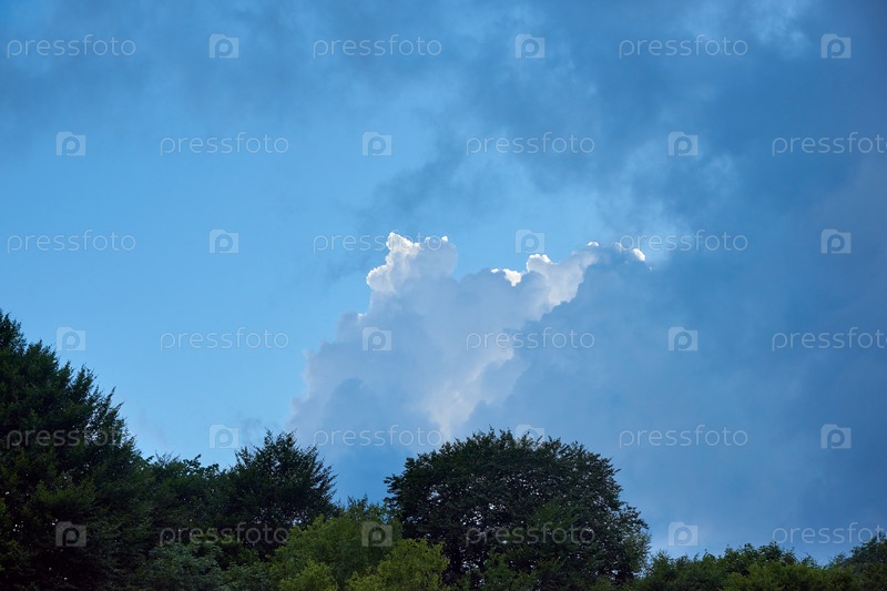 Речевые облака в свете солнца над лесом