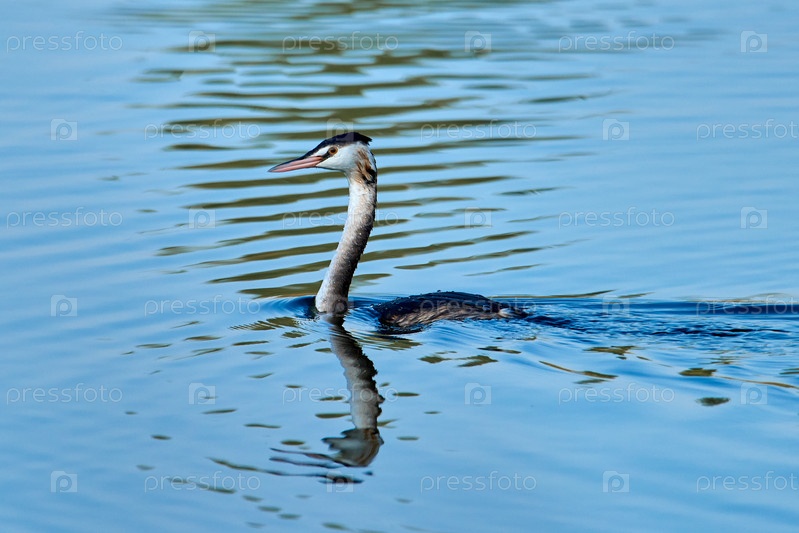 Большая хохлатая поганка — представитель семейства водоплавающих птиц