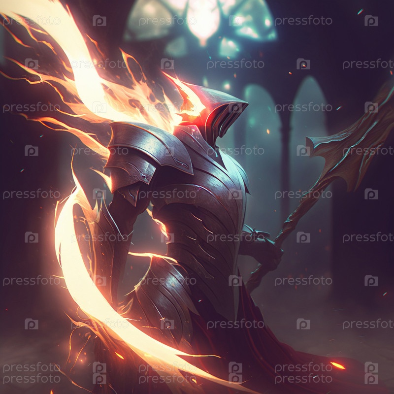 Воина в тяжелых доспехах окутывает таинственная пылающая энергия