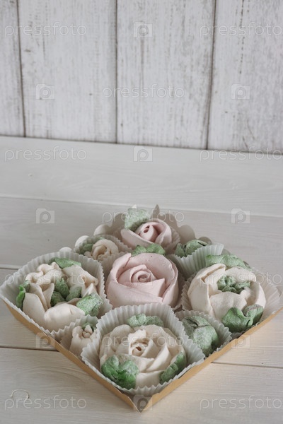 Домашний зефир в бумажных подарочных коробках. Зефирные цветы