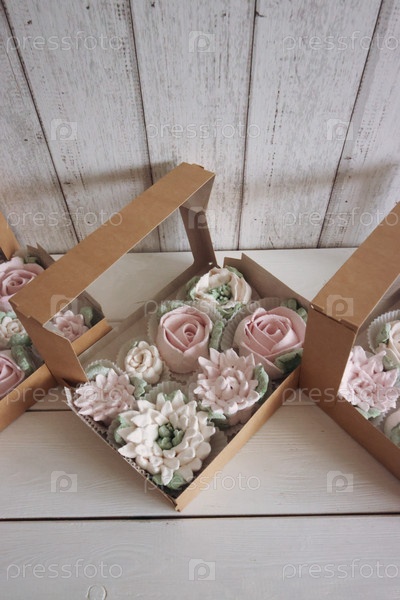 Домашний зефир в бумажных подарочных коробках. Зефирные цветы. Коробка открыта