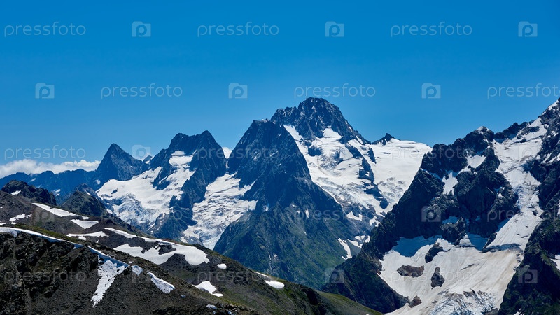 Горная вершина в черном цвете, покрытая ледниками и снегом. Северный Кавказ, Россия