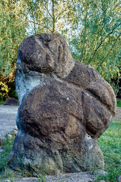 Окаменелый аммонит, похожий на инопланетного жителя, на фоне леса