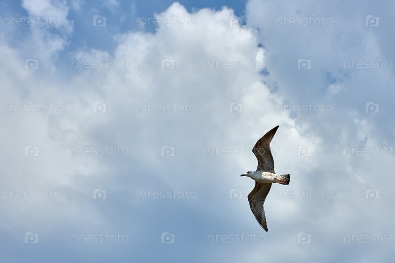 Чайка летит на фоне облаков