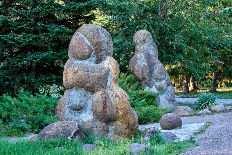 Окаменелый аммонит, похожий на инопланетного жителя, на фоне леса