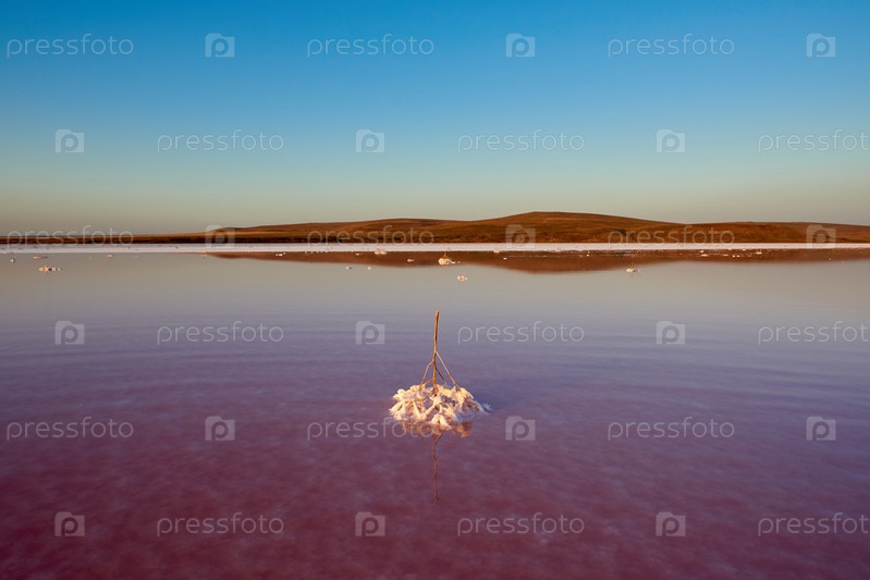 Закат на Кояшском соленом озере с розовой водой. Кояшское — соленое озеро на побережье Керченского полуострова в Криминале. Россия