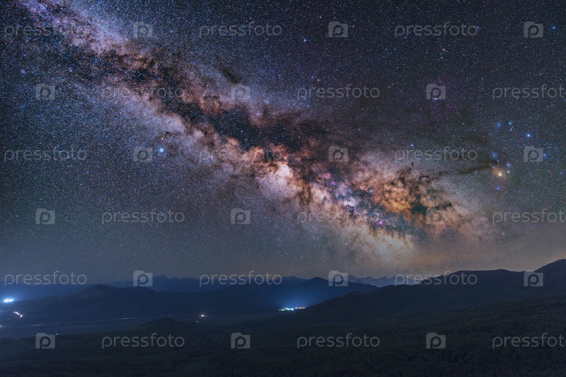 Космический снимок Вселенной галактики Млечный Путь со звездами на ночном небе и фоне гор