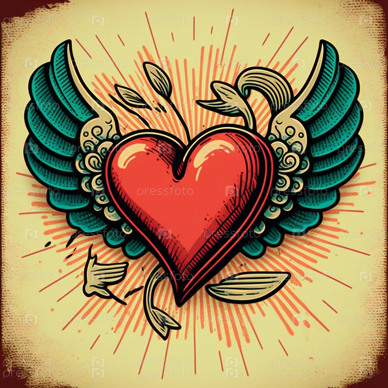 Мультяшный графический рисунок поющего сердца с крыльями