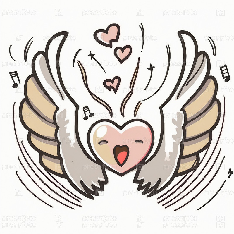Мультяшный графический рисунок поющего сердца с крыльями