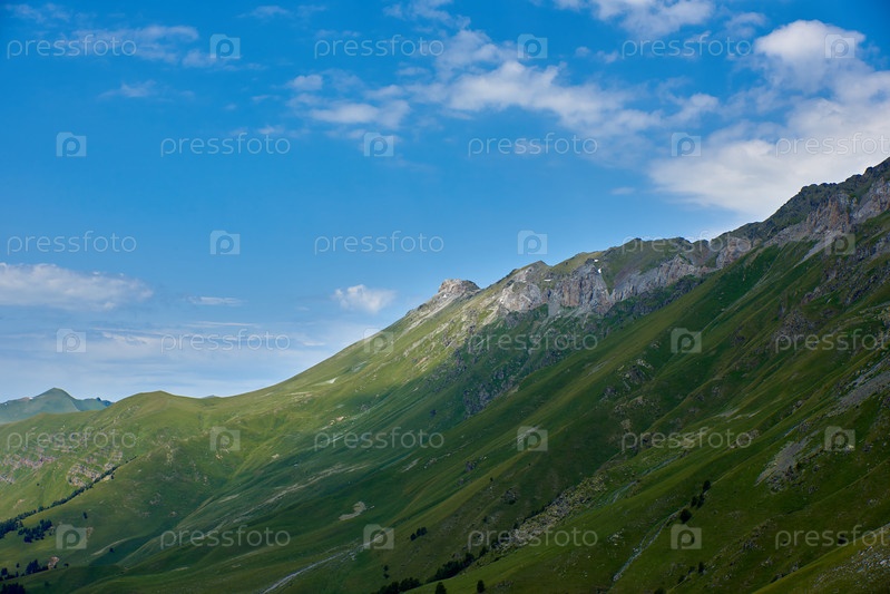 Зубчатый скальный гребень и перевал. Архыз Северный Кавказ Россия