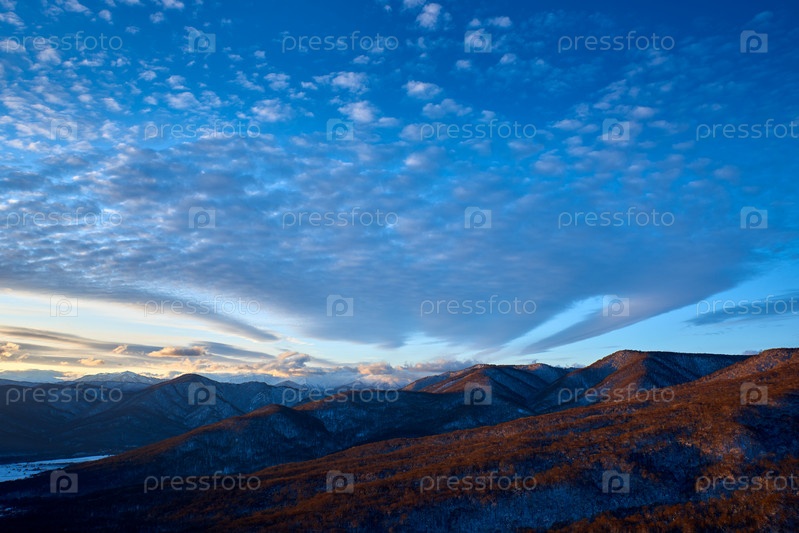 Кучевые облака над горным хребтом