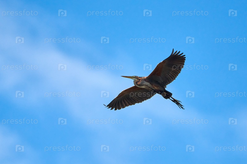 Летающая фиолетовая цапля. Ардея пурпурная