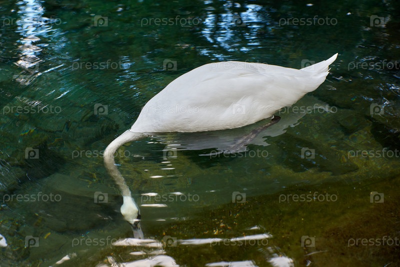 Лебедь-шипун в пруду с чистой водой
