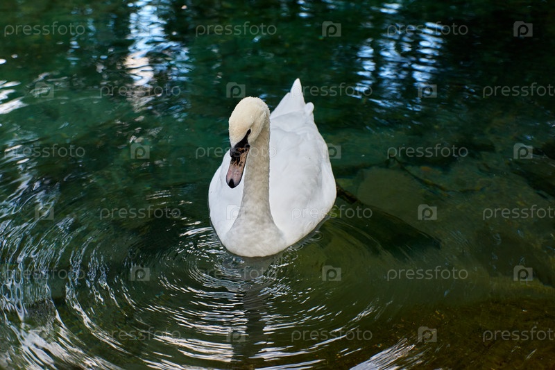 Лебедь-шипун в пруду с чистой водой