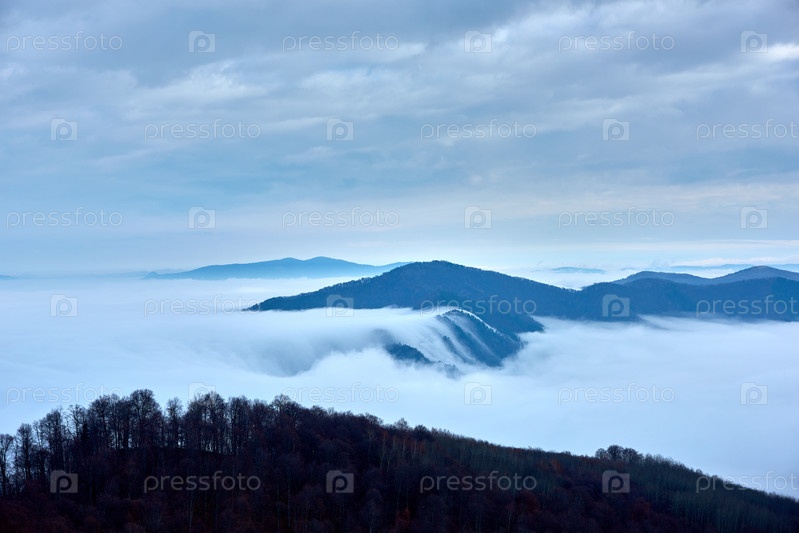 Потоки тумана в осенних горах