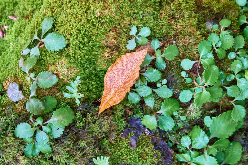 Осенний лист на зеленом мхе